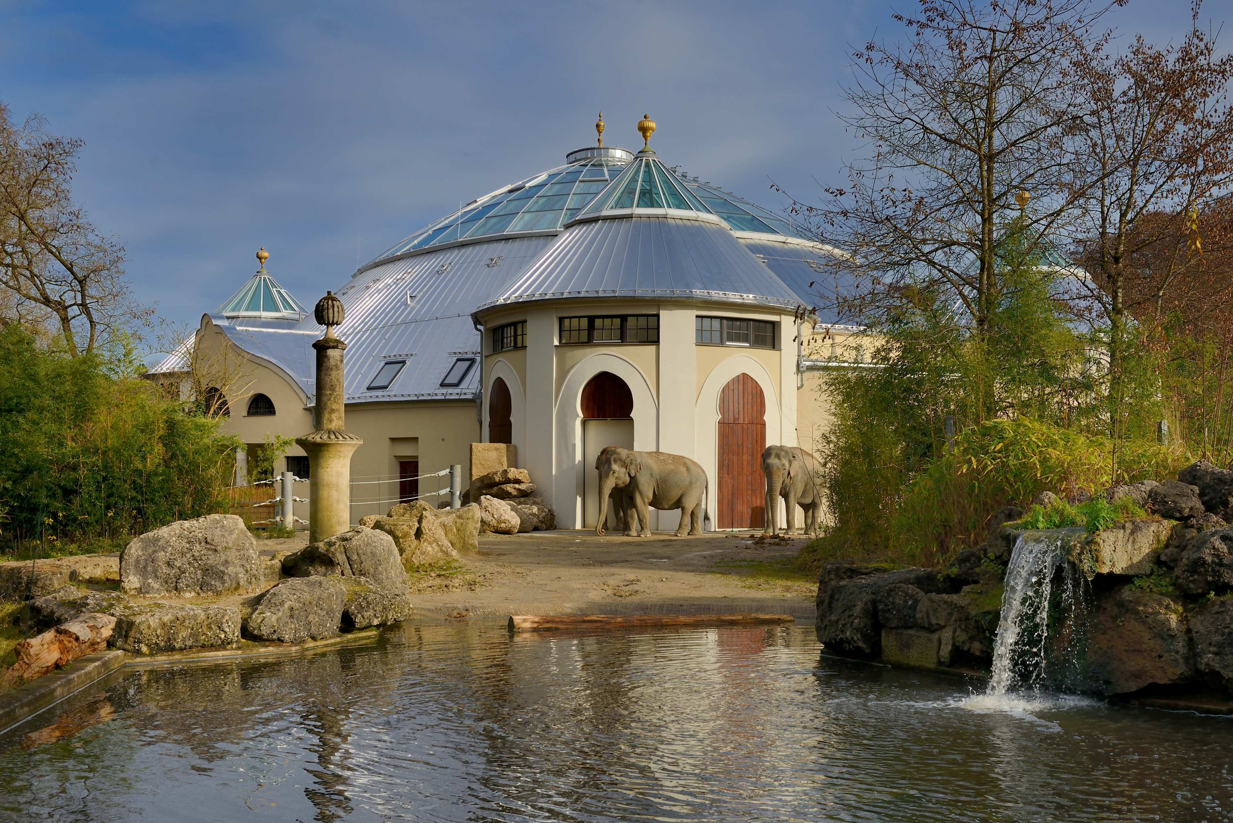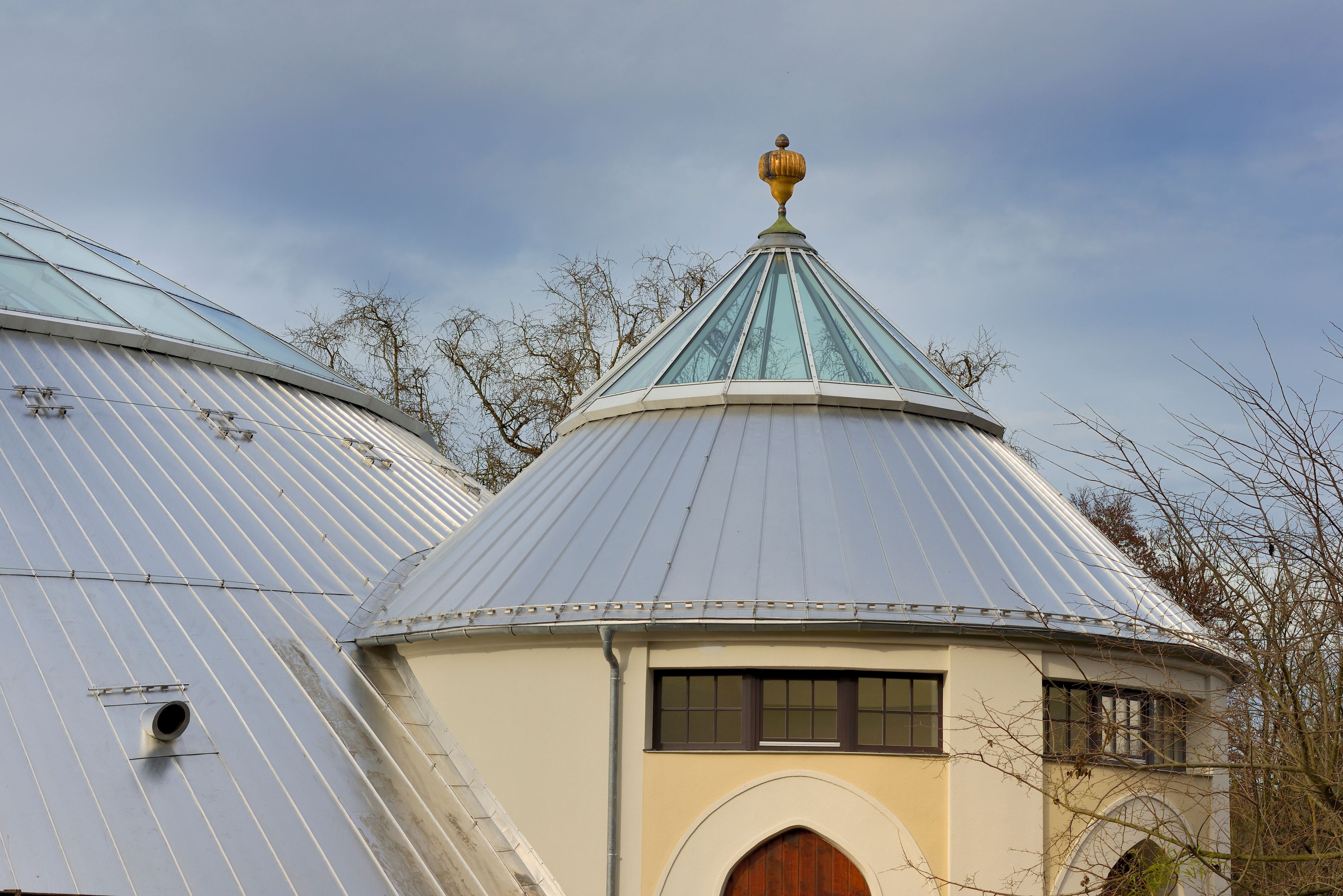 Tierpark Hellabrunn München Kuppel mit ovaler Grundform Material: Aluminium 0,7 mm Oberfläche: stucco dessiniert walzblank Details: Kuppelscharen für ovale Dacheindeckung Ausgeführt von: www.engel-spenglerei.de Zurück zur Übersicht